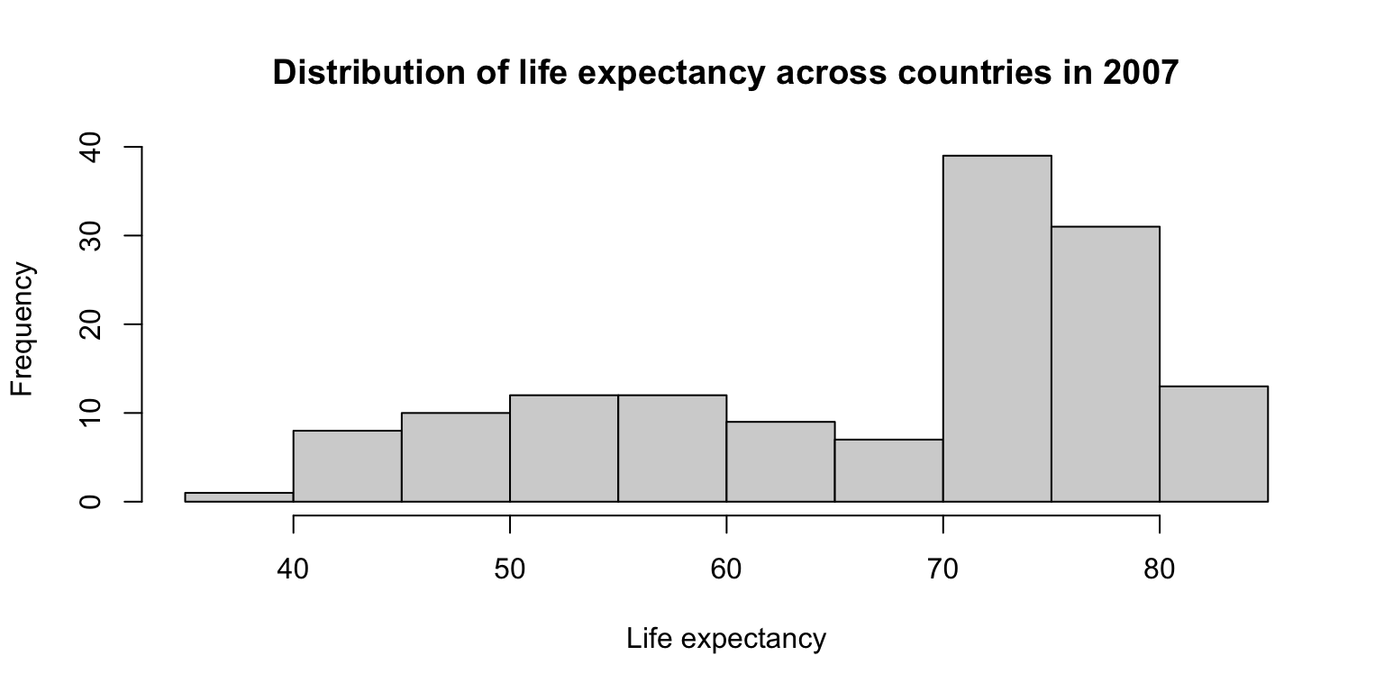 from its default setting and see what happens.hist(gapminder07$lifeExp,